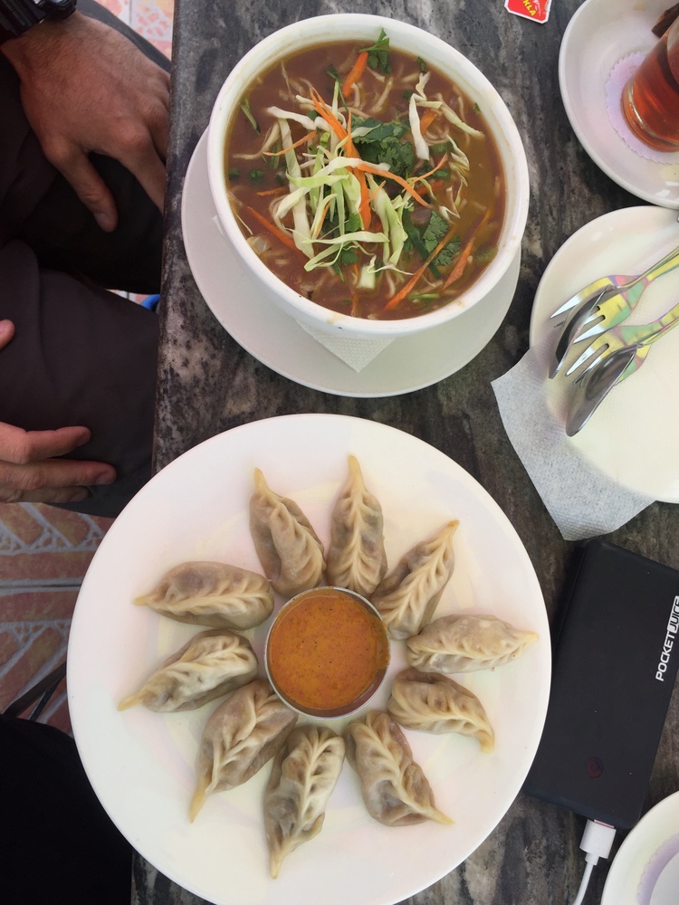 Momos in Nepal – these dumplings are delicious and served with tasty dipping sauces.