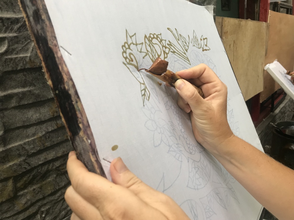 Batik originated in Java in the 12th century and is an important cultural art that denoted the social status of the royal courts. Wax is drawn onto the cloth in elaborate designs and drawings before it is repetitively dyed.