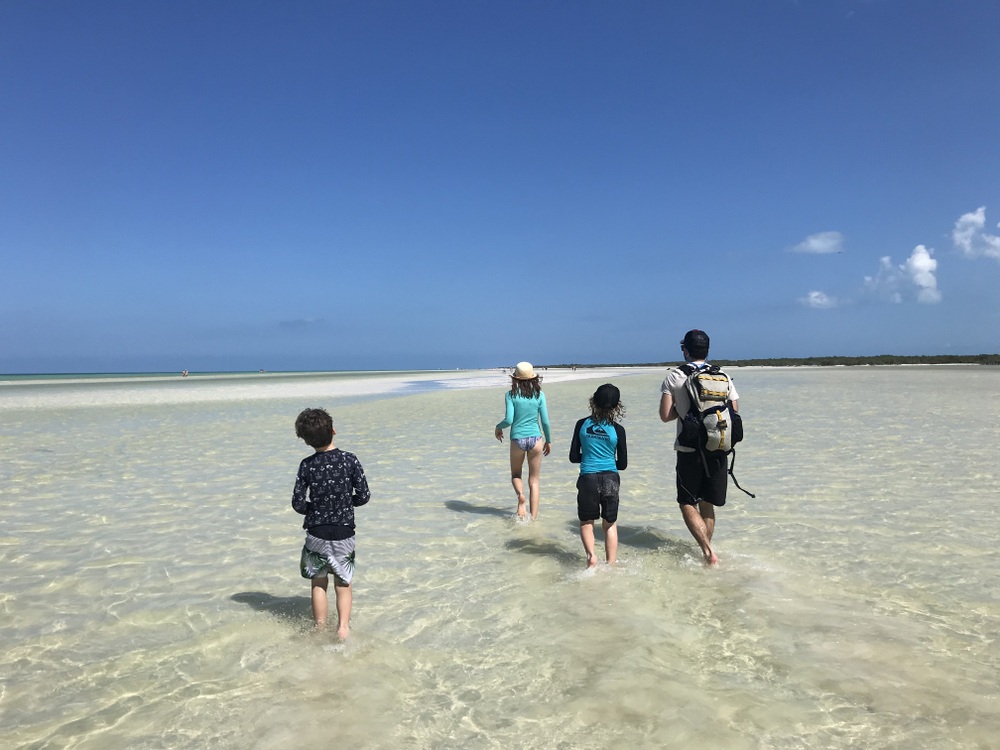 This is a great Holbox free activity to do with kids. Our kids enjoyed lounging on the calm shallow sand bars. There are numerous beach club restaurants that you can stop for lunch or a drink. We loved the seafood, drinks and live music at Raices. They even have a trampoline and play structure for kids.