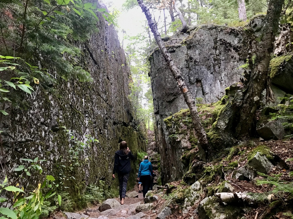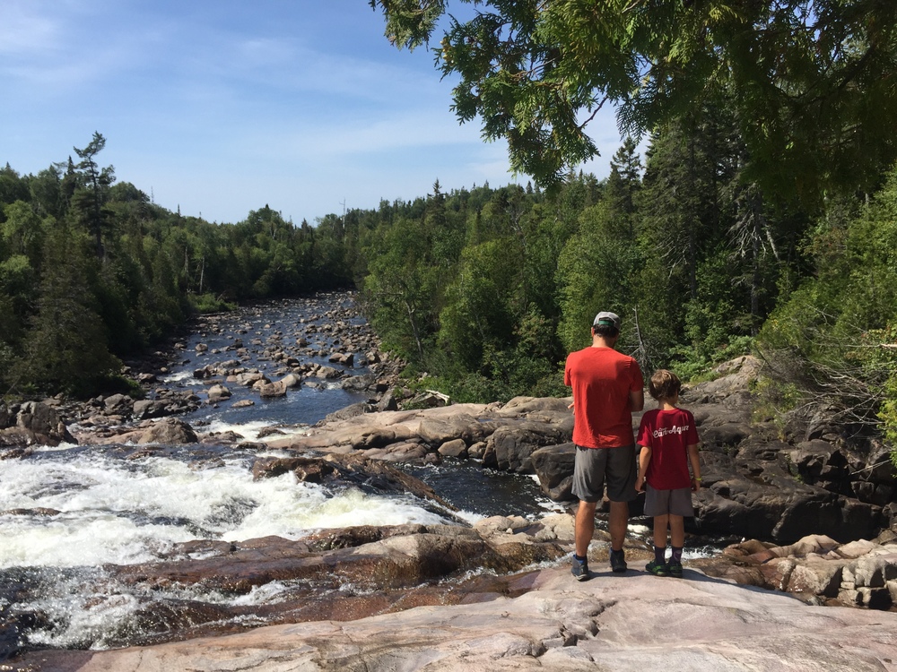 Pinguisibi (Sand River) (6 km out and back) – this trail takes you up the Sand River, an ancient Ojibway route. You can hike along the trail, but we had fun exploring the huge rocks along the river and the three waterfalls.