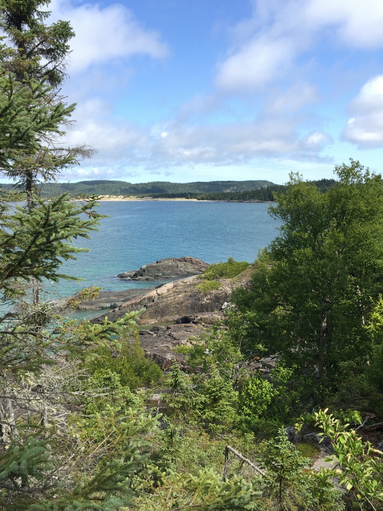 Orphan Lake (8 km loop) – this trail takes you around Orphan Lake with epic views of Lake Superior from high above the cliffs. We made a day of it and added a short (1 km) walk up the Coastal Trail to the Raised Beach campsites where we had lunch and swam. We then retraced our steps back to finish the Orphan Lake loop. Our total waking time was probably about 3 hours. Make sure you take the side trail to the Baldhead River where there are a series of waterfalls and pools to swim and play in. There are lots of wild blueberries along the way.