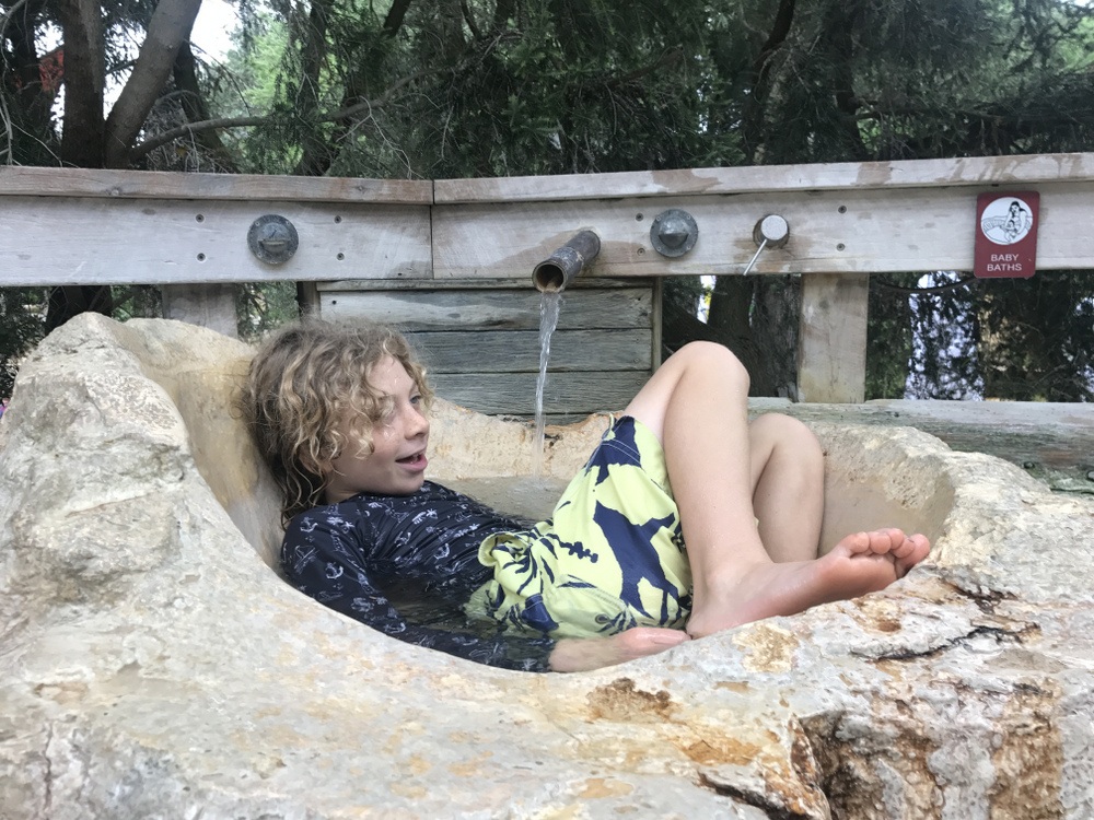 - have a chat with the kids beforehand about what is appropriate behaviour at the hot springs. My kids think anything that looks like a swimming pool is a pool and so we had a quick discussion about being respectful of other visitors (keeping noise down, not running around, splashing or jumping in). That being said, there is the designated children’s area and we found people very tolerant of children.
